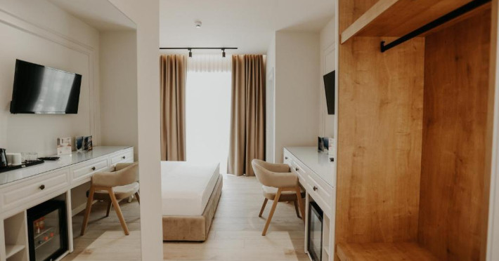 Seaside Hotel se află la 9 minute de mers pe jos de Plaja Ri și la 2,5 km de Plaja Vjetër. Cel mai apropiat aeroport este Aeroportul Internațional Maica Tereza din Tirana, situat la 152 km de Seaside Hotel.