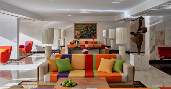 The hotel Hotel Seaside Palm Beach is located next to a beach. The nearest restaurants and bars can be found within 100 m. The city centre is around 300 m away. A supermarket and other shops you reach after around 300 m. Nearby there is a disco which offers entertainment in high season. The beach is Nudist bathing is allowed here. The hotel is equipped with a 24h reception, Wi-Fi, 3 lifts, a shop, a boutique, cash machine, a hairdresser, a jacuzzi, parking spaces as well as a TV lounge. In the outdoor area you will find a garden as well as a heated pool (open all year), where sun loungers and sun umbrellas are available for free. There is also a children's pool. Furthermore, outside you can find a sun terrace. You can store your luggage in the hotel's storage room. There is also a laundry service available at an additional cost to customers. If necessary, you can contact the medical centre (for a fee). For conventions and other business meetings, the hotel offers a conference area. If you want to explore the holiday region, you can use the car rental service close to the hotel (extra fee). Dogs up to 5 kg are the only pets allowed in the hotel (on request). Due to its barrier-free facilities the hotel is also suitable for wheelchair users. Catering Lunch and dinner are served à la carte. For the meals, there are a buffet restaurant and a bar as well as the pool bar. Distances