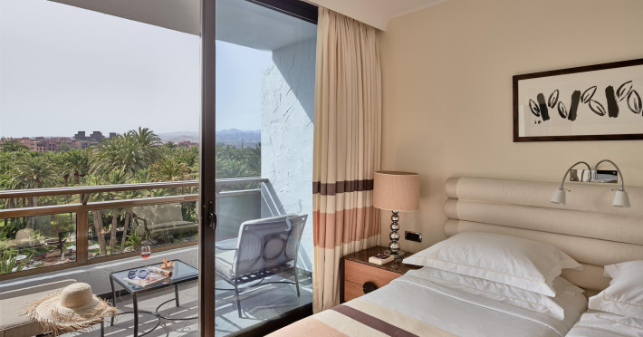 The hotel Hotel Seaside Palm Beach is located next to a beach. The nearest restaurants and bars can be found within 100 m. The city centre is around 300 m away. A supermarket and other shops you reach after around 300 m. Nearby there is a disco which offers entertainment in high season. The beach is Nudist bathing is allowed here. The hotel is equipped with a 24h reception, Wi-Fi, 3 lifts, a shop, a boutique, cash machine, a hairdresser, a jacuzzi, parking spaces as well as a TV lounge. In the outdoor area you will find a garden as well as a heated pool (open all year), where sun loungers and sun umbrellas are available for free. There is also a children's pool. Furthermore, outside you can find a sun terrace. You can store your luggage in the hotel's storage room. There is also a laundry service available at an additional cost to customers. If necessary, you can contact the medical centre (for a fee). For conventions and other business meetings, the hotel offers a conference area. If you want to explore the holiday region, you can use the car rental service close to the hotel (extra fee). Dogs up to 5 kg are the only pets allowed in the hotel (on request). Due to its barrier-free facilities the hotel is also suitable for wheelchair users. Catering Lunch and dinner are served à la carte. For the meals, there are a buffet restaurant and a bar as well as the pool bar. Distances- Nearest town: approximately at 60 km