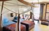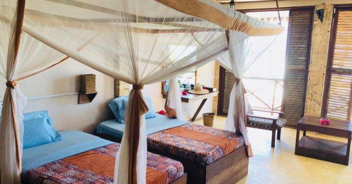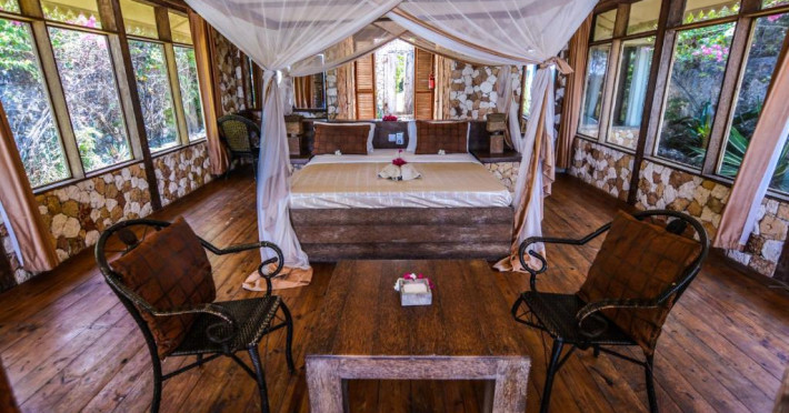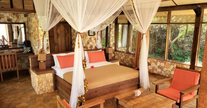 Camerele spațioase sunt decorate in stil zanzibar contemporan și beneficiază de terase private cu vedere spre Oceanul Indian. Restaurantul principal servește preparate proaspete din fructe de mare și specialități locale, intr-o atmosferă relaxată cu priveliști panoramice spre ocean.