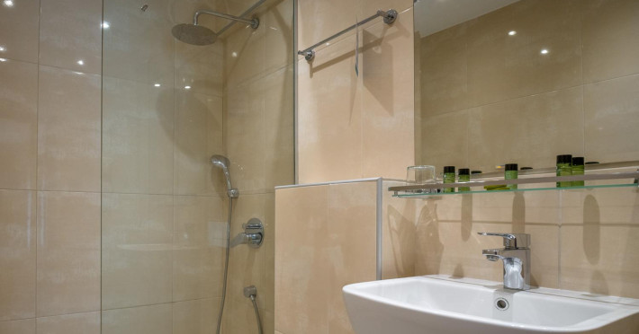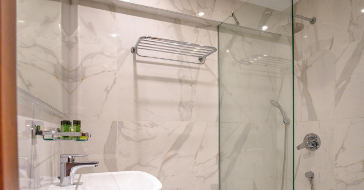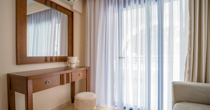 Camerele sunt in intregime echipate cu o cabină de duș, uscător de păr, pat dublu, TV prin satelit, acces la internet, un minibar, set de călcat, aer condiționat individual reglementate și un balcon privat sau terasă.