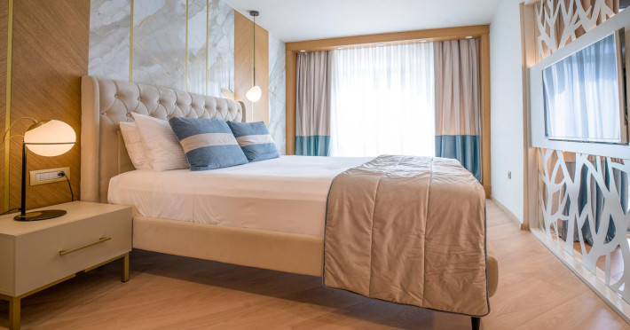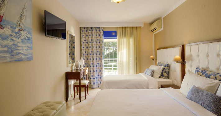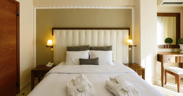 Hotelul este format din 41 de camere in intregime echipate cu TV prin satelit, uscator de par, radio, A/C, acces la internet, balcon sau veranda. Oaspetii se pot bucura de momente de relaxare in Spa-ul hotelului.Facilităţi camere