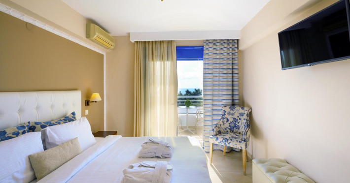 Hotelul se afla intr-un mic paradis, intre dealurile verzi din Nea Kallikratia şi plaja cu apele de cristal.