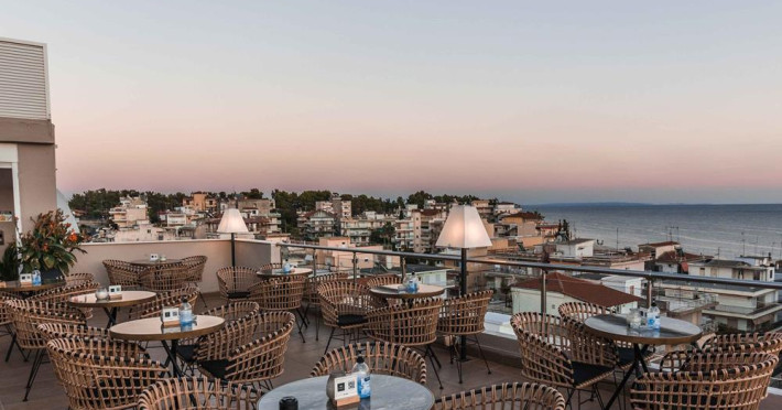 Hotelul dispune turistilor o piscina cu bar, gradina pe acoperis cu vedere la Golful Thermaikos, sala de firness si un centru SPA, internet Wi-Fi, loc de joaca pentru copii, sala de conferinta.