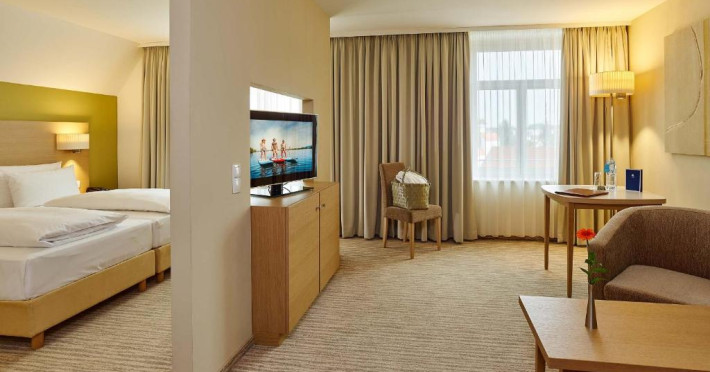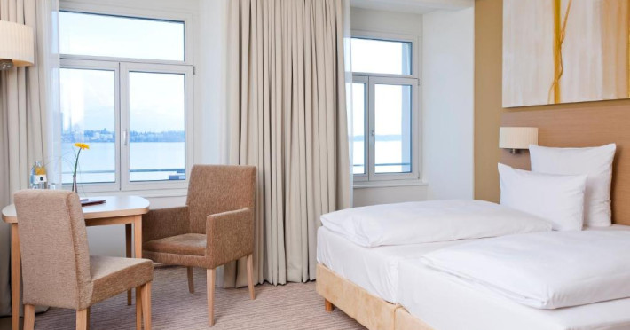 Camerele sunt spatioase si includ aer conditionat, acces gratuit la internet prin Wi-Fi, TV prin cablu si minibar. Fiecare cameră are vedere la lac sau la muntele Pfänder.