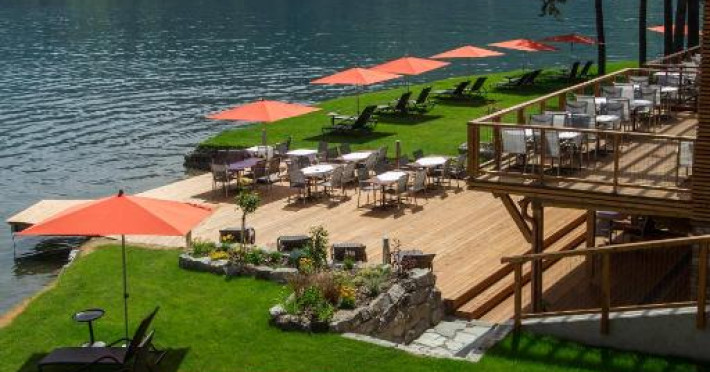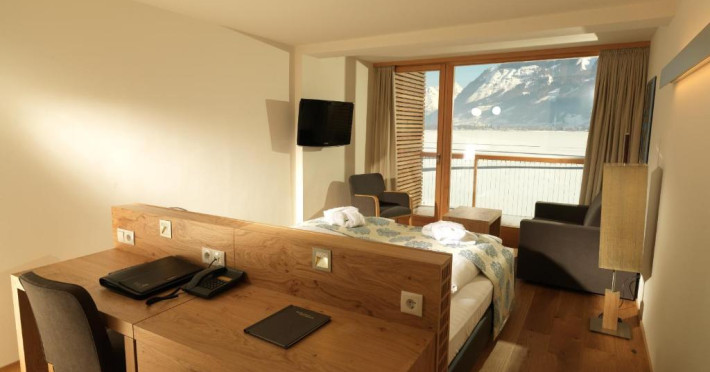 The restaurant features a winter garden overlooking the lake, as well as a lakeside terrace. It serves international and Austrian cuisine made from regional products. Half-board includes a breakfast buffet and a 4-course dinner with a choice of dishes and a salad bar.