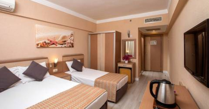 Seher Kumkoy Star Resort & Spa, un resort all-inclusive de 4 stele, combina relaxarea cu divertismentul, fiind potrivit pentru familii si cupluri. Oaspetii se bucura de piscine exterioare si interioare, o plaja privata cu nisip fin si servicii de wellness la Afrodit Spa, toate intr-un ambient confortabil si modern. Restaurantul principal, diverse snack baruri si doua restaurante a la carte asigura optiuni culinare variate, completate de activitati si facilitati pentru toate varstele.Localizare
