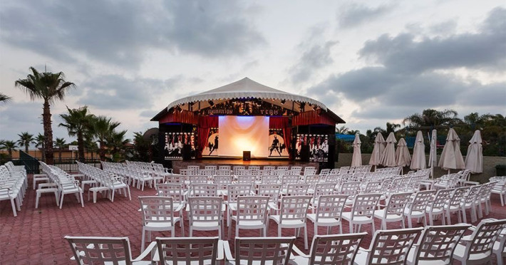 Facilitati hotel: Hotelul pune la dispozitia turistilor: receptie 24h, restaurant, diferite tipuri de bar, patiserie, sala de fitness, disco, doctor, spalatorie, piscina, piscina pentru copii, spectacole de animatie, miniclub pentru copii, loc de joaca pentru copii, aqua park, mini golf, biliard, tenis de masa, tenis de camp, teren de baschet, sporturi nautice pe plaja, sezlonguri si umbrele, parcare, spa si centru wellness cu baie turceasca, sauna, masaj, zona de plaja privata cu sezlonguri si umbrele.