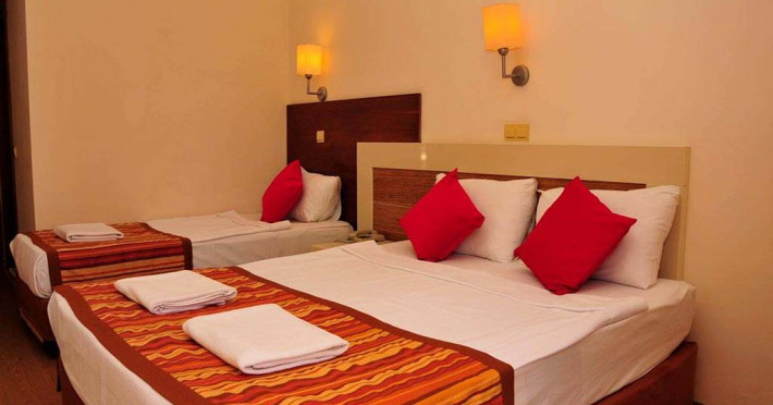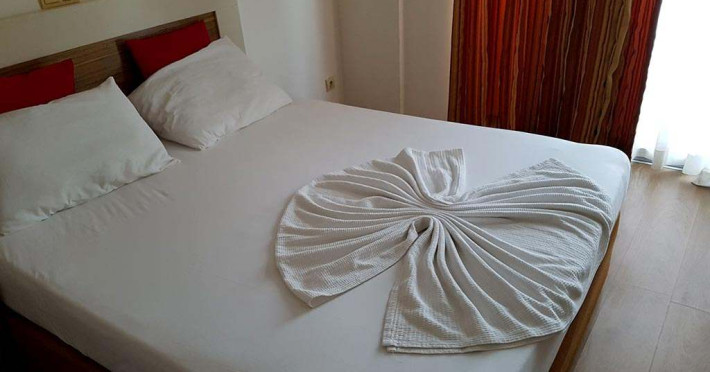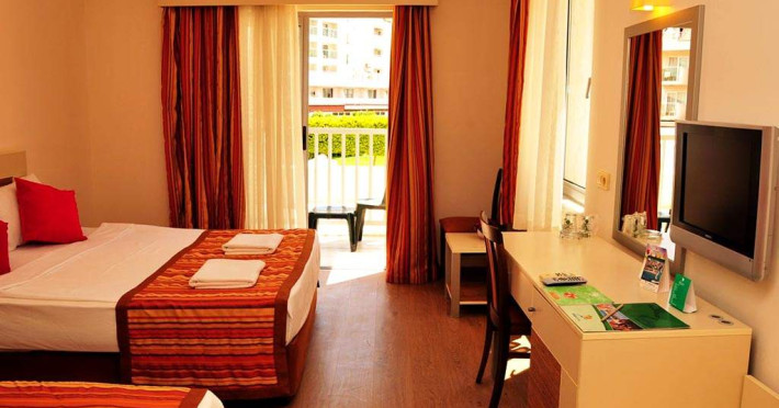 Sunt disponibile 184 camere. Camerele de la Seher Sun Beach Hotel au în dotare aer condiționat și Tv. În camere există baie cu cadă sau duș prevăzută cu foehn. Unele camere au balcon cu vedere la mare, unde oaspeții pot admira apusul sau răsăritul soarelui. Oaspeții au acces gratuit la serviciul Wi-fi în camere. Curățenia in cameră se face zilnic.