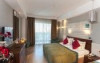 Dotari camere: Hotelul pune la dispozitia oaspetilor 270 de camere (standard, family, camera pentru persoane cu dizabilitati).Toate camerele sunt dotate cu aer conditionat, balcon, baie privata cu cabina de dus sau cada, TV cu ecran plat, minibar, seif, parchet, pat matrimonial sau paturi twin.