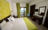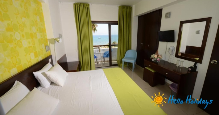 Toate camerele sunt decorate modern, au mobilier din lemn de culoare închisă şi ferestre cu termopan, precum și acces la un balcon cu vedere laterală sau directă la Marea Mediterană. Camerele au TV LCD de 22 inch, seif şi baie privată cu duș.