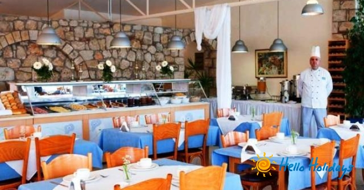Restaurantul proprietății oferă atât mese à la carte, cât şi tip bufet. Barul de la piscină servește băuturi și cocktail-uri și oferă vedere panoramică la mare.