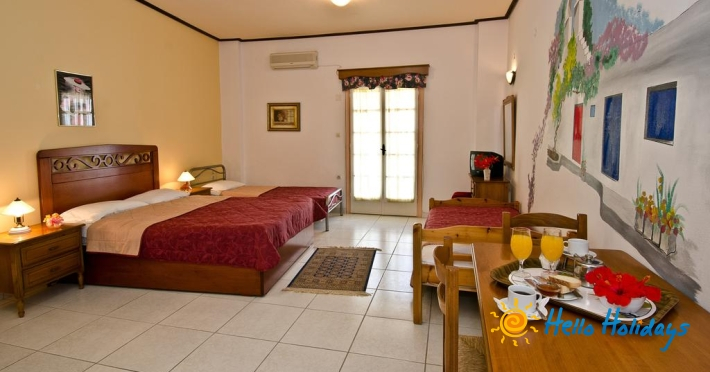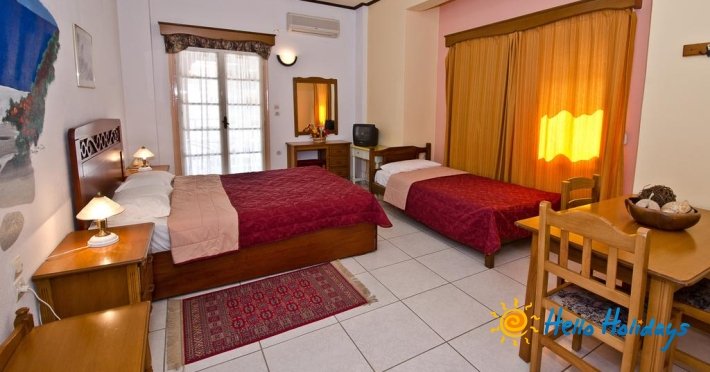Toate studiourile și apartamentele Hotelului Elios oferă TV prin satelit şi balcon cu vedere la Marea Egee sau la grădină. Fiecare dintre acestea are chicinetă cu minifrigider și plite de gătit. Unele unităţi de cazare oferă dormitor separat și zonă de relaxare. Aveţi la dispoziţie articole de toaletă gratuite.