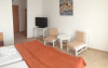 Camere: Complet renovate si reamenajate, camerele duble sunt prevazute cu aer conditionat, balcon, minifrigider, baie proprie si TV LCD cu cablu. Hotelul dispune atat de camere cu pat matrimonial, cat si de camere duble cu 2 paturi. Garsonierele sunt formate din dormitor cu pat matrimonial si living cu canapea extensibila. Intre living si dormitor este spatiu deschis. Garsonierele sunt dotate cu aer conditionat, balcon, minifrigider, baie proprie si TV LCD cu cablu.
