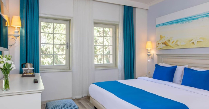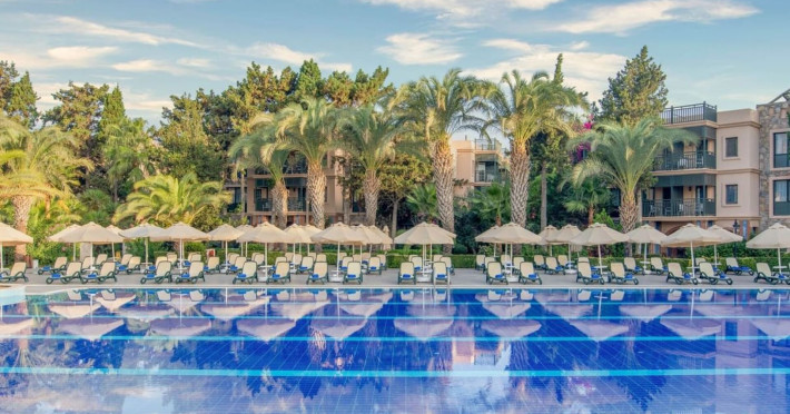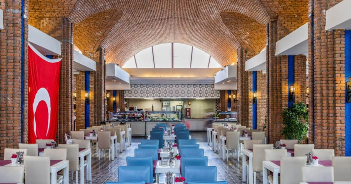 The hotel KAIRABA BODRUM IMPERIAL is located in the vicinity of a private sandy beach. The city centre is around 18 km away. There is a shuttle between the hotel and the airport (for a fee). The beach is awarded a blue flag. Here, there are sun loungThe hotel KAIRABA BODRUM IMPERIAL is located in the vicinity of a private sandy beach. The city centre is around 18 km away. There is a shuttle between the hotel and the airport (for a fee). The beach is awarded a blue flag. Here, there are sun loungers, cushions and beach towels available. At the beach there is a bar serving refreshing drinks. The hotel has a 24h reception (check-in is possible around the clock), a lobby bar, Wi-Fi, internet access, a hairdresser, a first aid kit, parking spaces as well as a TV lounge with satellite TV. In the outdoor area of the property you will find a garden as well as a heated pool that is open seasonally, where pool towels are available for free. For children there is also a separate childrens pool with a water slide (type open slide). For your entertainment, the hotel offers a disco. You can store your luggage in the hotels storage room. There is also a laundry service available at an additional cost to customers. Ironing equipment can be rented at the hotel for a fee. For your comfort the hotel page will ensure you are looked after. If necessary, you can contact the medical centre at any time. The energy supply is 220 and 120 Volts. For conventions and other business meetings, the hotel offers a conference area A photographer can also be ordered from the hotel for business events. If you want to explore the holiday region, you can use the car and motorbike rental service close to the hotel (extra fee). For guests on their honeymoon, the hotel has special offers such as special honeymoon packages or a basket of fruit in the room. In your hotel, a lot of focus is placed on sustainability. This includes among others a central room air-conditioning. Due to its barrier-free facilities , such as barrier-free entrances and wheelchair accessible rooms, the hotel is also suitable for wheelchair users. Catering As catering services the hotel offers all-inclusive. Breakfast is offered continental or from the buffet. Lunch and dinner are also served from the buffet. As part of the all-inclusive service, international alcoholic beverages (limited) are available around the clock and at no extra charge. For the meals, there are a buffet restaurant with terrace (Italian and Mediterranean dishes) and a 24h snackbar as well as the pool bar. Distances Airport: approximately at 55 km Sports amp; Leisure To keep your fitness up on holiday, there is a gym for guests to use. For an fee, you can take advantage of various water sports, such as jet skiing. With darts and volleyball various other sports offer a lot of variety on holiday. Furthermore, various water sports such as sailing are offered in the area. A sauna awaits you in the wellness area. The hotel also offers massages (extra fee). Infants can be looked after in the hotels own baby club. For older children the care takes place in the childrens club. Junior hotel guests can also let off steam in the mini disco. In terms of adult entertainment, live music is presented on certain days. Additional information The accommodation has a total of 375 rooms. The hotel staff speak English, German, Russian and Turkish.Datorita dinamicitatii domeniului disponibilitatea ofertelor se modifica de la un moment la altul. De aceea ofertele sunt valabile in limita locurilor disponibile. Agentia nu este responsabila pentru eventualele neconcordante care pot aparea intre informatiile privind tarifele si alte detalii din site si informatiile primite in agentie. In aceste cazuri vor avea prioritate, intotdeauna, informatiile primite in agentie.