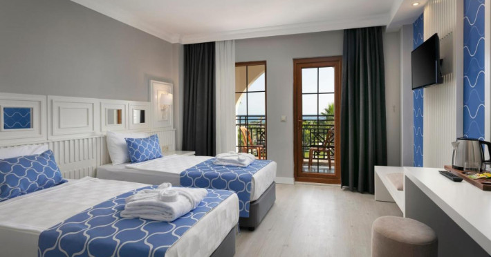 Localizare: hotelul este situat pe Okurcalar Beach și la 77 km distanta de Aeroportul Internațional Antalya. Facilitati hotel:3 piscine, WiFi, transfer de la și/sau la aeroport, acces imediat la plajă, spa și centru de wellness, sală de fitness, restaurant, parcare gratuită, bar, zonă de plajă privată. Dotari camere: balcon, WiFi gratuit, vedere la gradina, aer conditionat, baie privata, TV cu ecran plat, Terasa, Minibar. Servicii contra cost: serviciu de transfer, serviciu de curatatorie si calcatorie, snorkelling, scufundari, facilitati sporturi nautice, pescuit, echipament tenis, biliard, masaj, sala fitness, spa si centru wellness, sauna, jacuzzi. IMPORTANT: Descrierea hotelului se bazeaza pe detaliile disponibile la momentul pregatirii tarifelor pentru sezonul turistic ce urmeaza a se desfasura si are caracter pur informativ. Hotelul poate aduce modificari de structura, denumiri camere, tip servicii incluse/ neincluse si altele, fara a notifica in prealabil. Pentru informatiile oficiale va rugam sa consultati website-ul hotelului.Datorita dinamicitatii domeniului disponibilitatea ofertelor se modifica de la un moment la altul. De aceea ofertele sunt valabile in limita locurilor disponibile. Agentia nu este responsabila pentru eventualele neconcordante care pot aparea intre informatiile privind tarifele si alte detalii din site si informatiile primite in agentie. In aceste cazuri vor avea prioritate, intotdeauna, informatiile primite in agentie.