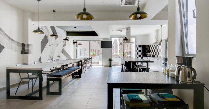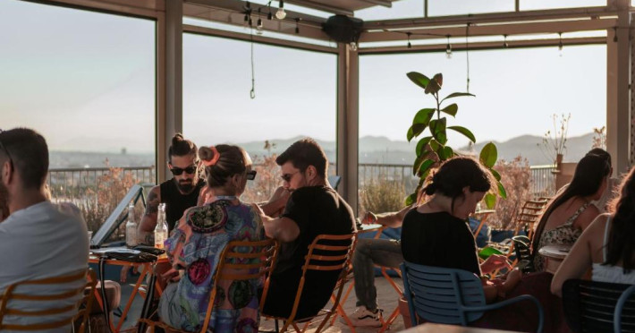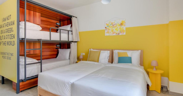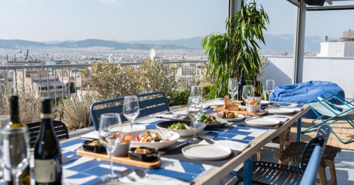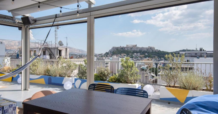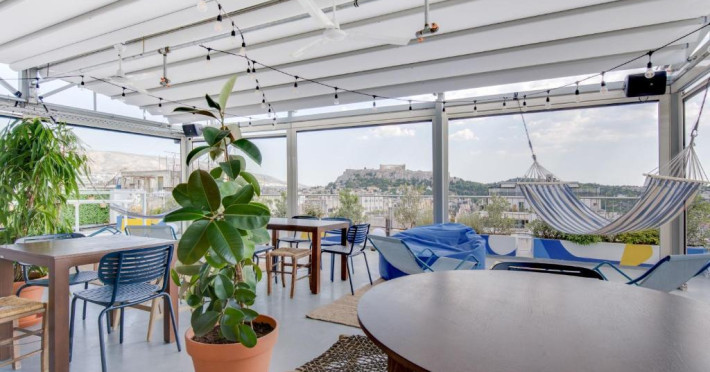 Hostelul pune la dispoziție o sală de cinema și un bar-restaurant pe acoperiș, cu vedere la Acropole.