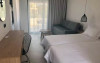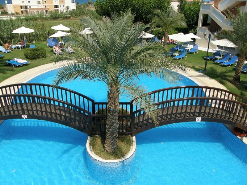 In the garden of the hotel there are two (2) clean pools surrounded by tropical Palm trees creating an exotic oasis. There, the hotel’s guest can relax in one of the sun beds enjoying coffee, soft drink or drink offered by the pool bar, breathing the seductive aromas of the sea which is just a stone's throw from the hotel.