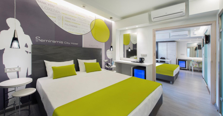 Sunt disponibile 120 camere. Fiecare cameră dispune de un aparat pentru preparare cafea sau ceai. Oaspeții pot solicita serviciul de room service pentru a servi masa sau diverse băuturi. Camerele luminoase de la Semiramis Hotel sunt dotate cu parchet, aer condiționat, Tv cu canale prin satelit și seif. Camerele au balcon cu masă și scaune unde pot fi petrecute momente de relaxare. În camere există baie cu cadă sau duș ce are în dotare foehn și articole de toaletă gratuite. Oaspeții au acces gratuit la serviciul Wi-fi în camere. Curățenia in cameră se face zilnic. Proprietatea oferă camere pentru familie cu o suprafață mai mare și un număr mai mare de paturi față de cele standard.