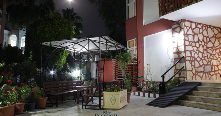 Semoris Hotel este o proprietate de 3 stele situată în Side (Antalya) care oferă un restaurant și o piscină în aer liber cu șezlonguri și umbrele de soare. Proprietatea are servicii de recepție cu program non - stop și închirieri auto. Se oferă acces gratuit la internet Wi-fi în spațiile publice. Parcarea este disponibilă la proprietate gratuit.