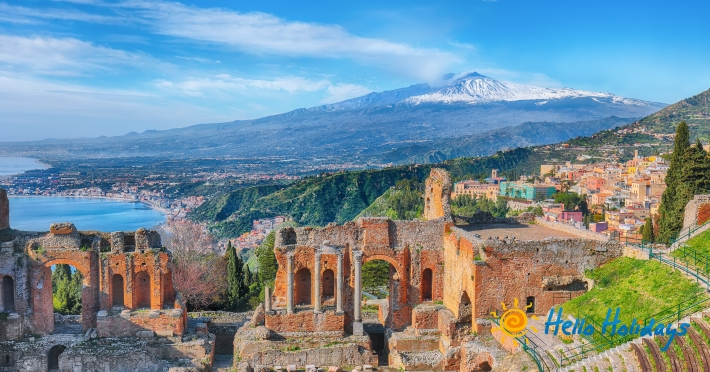 Va invitam in excursie pe insulele vulcanice pentru a vedea si simti efectele curative ale bailor cu namol cu sulf. Intr-una dintre zilele minunate pe care le vom petrece aici va propunem sa urcam spre cel mai inalt punct al insulei, la peste 3000 m altitudine. Vulcanul Etna este o “ea” pentru localnici, care vorbesc despre vulcan la feminin. Chiar daca anual vulcanul este activ, poalele sale sunt dens populate si rar gasim produse atat de gustoase ca aici. Sicilia este locul unde putem sa vedem unele din cele mai interesante mozaicuri din Europa. Le regasim la Palermo, la Monreale si la Piaza Armerina – Villa del Casalle. Tot in Palermo ne amintim si de Nicolae Balcescu, care a trecut in nefiinta in aceste locuri, aflandu-se in exil. In Sicilia putem admira unele din cele mai interesante exemple de arhitectura prin remarcabilul Baroc Sicilian si renumitele Orase ale Barocului (opt la numar) din Val di Noto, despre care Cezare Brandi spunea ca reprezinta o adevarata “gradina de piatra”. Siracusa ne impresioneaza prin arhitectura, fantani, temple vechi de peste 2500 de ani, legende locale, dar si prin faptul ca aici creste papirusul. Asadar, va invitam sa vizitati si acest oras al teatrului antic si al Aretuzei. Cu siguranta o sa vorbim si despre mafie si o sa ne delectam cu “perla Siciliei” - Taormina si poate ne rasfatam cu un program traditional cu muzica si dans.