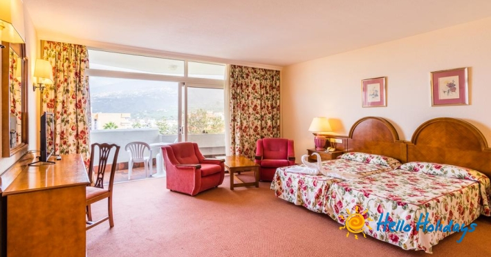Camerele oferă aer condiţionat, balcon cu vedere la mare, la munte sau la piscină; includ TV prin satelit şi minibar.