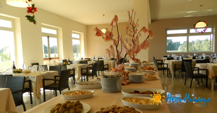 Hotelul Calabernardo Resort 4* este compus din mai multe cladiri unde se gasesc camerele de cazare si o cladire principala unde este localizata receptia, un bar, un restaurant cu peste 150 de locuri, o terasa de vara, un salon de infrumusetare si un bar American.