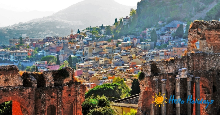 Taormina este recunoscuta ca fiind “Perla Marii Mediterane” si este situata pe coasta de est a insulei, deasupra a doua golfuri a caror imagine este desprinsa parca dintr-o carte postala. Statiunea a fost construita pe Muntele Tauro, iar in fundal se vede vulcanul Etna; este o priveliste care iti taie pur si simplu respiratia. Taormina poate fi cel mai bine descrisa ca fiind o combinatie intre munti, mare de azur, stanci dramatice si istorie. Renumitul teatru grec din Taormina este una dintre atractiile turistice importante; de aici puteti admira o frumoasa priveliste a coastei de est. O plimbare pe stradutele inguste ale Taorminei cu magazine chic, cafenele si restaurante este un prilej de incantare. Nu trebuie sa ratati o plimbare prin gradinile publice din Taormina, pline de verdeata si flori multicolore.