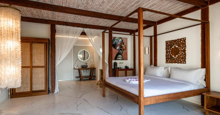 Sensations Eco-Chic Hotel se află pe malul mării in Pwani Mchangani Mdogo și oferă cazare de 5 stele, o piscină in aer liber, o grădină și o zonă de plajă privată. Proprietatea include un bar, precum și un restaurant care servește preparate din bucătăria africană. Proprietatea oferă o recepție deschisă non-stop, servicii de transport de la/la aeroport, room-service și WiFi gratuit in intreaga proprietate.
