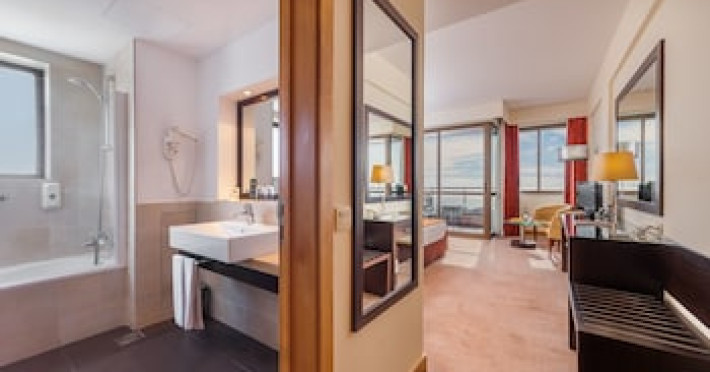 This exclusive hotel is located in quiet surroundings, offering panoramic views over the town and only 200 m from the sea as well as just 2 km from the centre. Various shopping facilities, restaurants and bars (each around 100 m away), as well as links to the public transport network (50 m) can be found in the vicinity. The well-known Lido, (sea swimming pool) as well as the nearest nightclub can be reached within 15 minutes. This hotel comprises a total of 119 doubles and 12 suites spread over 7 floors. A lobby awaits guests with 24-hour reception service, safes and lifts. Facilities include an internet desk, a restaurant and a bar. There are also laundry services, medical assistance and a car park. The comfortably furnished rooms come with an en suite bathroom with hairdryer, a direct dial telephone, satellite/cable TV with VOD, a minibar, a king-sized bed, a safe, coffee and tea facilities a balcony and central heating. The well-kept outdoor complex is home to a swimming pool, snack bar, sun loungers and parasols. Additionally, the hotel offers a sauna, a gym and a massage services (additional charges apply). A seasonal evening entertainment programme with dance, live international shows and live music provide amusement for guests. Breakfast is offered to guests in the mornings and can be selected from a buffet. The midday may be chosen from a menu and evening meal is a Buffet Themed party with live cocking station . Special dietary requirements as well as individual dishes may be prepared on request. SAVOYDatorita dinamicitatii domeniului disponibilitatea ofertelor se modifica de la un moment la altul. De aceea ofertele sunt valabile in limita locurilor disponibile. Agentia nu este responsabila pentru eventualele neconcordante care pot aparea intre informatiile privind tarifele si alte detalii din site si informatiile primite in agentie. In aceste cazuri vor avea prioritate, intotdeauna, informatiile primite in agentie.