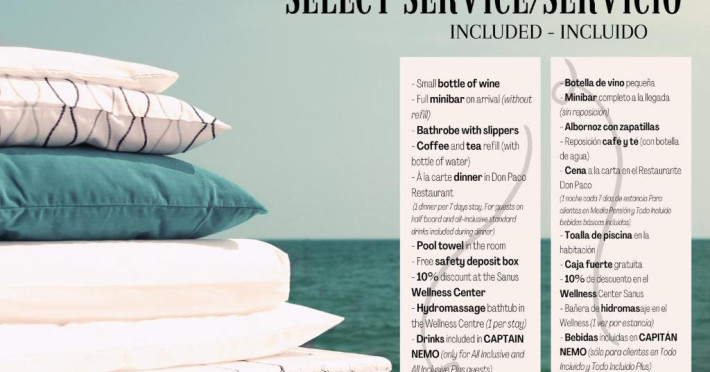 Hotelul pune la dispoziție 2 restaurante tip bufet cu bucătărie deschisă, un restaurant à la carte care servește preparate cu specific spaniol, precum și mai multe baruri unde puteți salva o varietate de băuturi și gustări. Unul dintre restaurantele tip bufet este destinat exclusiv persoanelor adulte.