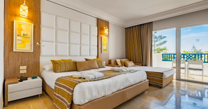 Localizare: hotelul este situat in apropiere de Plaja Kantaoui si la 21 km distanta de Aeroportul Internațional Enfidha-Hammamet. Facilitati hotel: 3 piscine, WiFi, transfer de la și/sau la aeroport, acces imediat la plajă, spa și centru de wellness, sală de fitness, restaurant, parcare gratuită, bar, zonă de plajă privată. Dotari camere: balcon, WiFi gratuit, vedere la gradina, aer conditionat, baie privata, TV cu ecran plat, Terasa, Minibar. Servicii contra cost: serviciu de transfer, serviciu de curatatorie si calcatorie, snorkelling, scufundari, facilitati sporturi nautice, pescuit, echipament tenis, biliard, masaj, sala fitness, spa si centru wellness, sauna, jacuzzi. IMPORTANT: Descrierea hotelului se bazeaza pe detaliile disponibile la momentul pregatirii tarifelor pentru sezonul turistic ce urmeaza a se desfasura si are caracter pur informativ. Hotelul poate aduce modificari de structura, denumiri camere, tip servicii incluse/ neincluse si altele, fara a notifica in prealabil. Pentru informatiile oficiale va rugam sa consultati website-ul hotelului.Datorita dinamicitatii domeniului disponibilitatea ofertelor se modifica de la un moment la altul. De aceea ofertele sunt valabile in limita locurilor disponibile. Agentia nu este responsabila pentru eventualele neconcordante care pot aparea intre informatiile privind tarifele si alte detalii din site si informatiile primite in agentie. In aceste cazuri vor avea prioritate, intotdeauna, informatiile primite in agentie.
