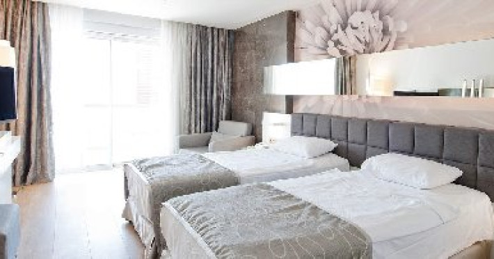 Boutique hotel destinat persoanelor peste 18 ani , cu o suprafata de 4000 mp si 74 camere repartizate astfel : 24 camere standard , suprafata 24mp 50 camere deluxe suite , suprafata 34 mp Localizare : pe malul marii ( 60 m de plaja ) , la 98 km distanta de aeroportul din Antalya , 20 km distanta de centrul orasului Alanya . Dotari camera : tv lcd , telefon , mini bar ( contra cost ) , seif , cafetiera , aer conditionat ( centralizat ) , conexiune la internet , baie cu dus ,parchet , balcon . Camerele deluxe au jacuzzi pe balcon . Facilitati hotel : un restaurant pentru servirea meselor principale in regim bufet , lobby bar , pool & snack bar , piscina exterioara , piscina interioara , sala fitness , room service , rent a car , cabinet medical Servicii cu plata : room service , rent a car , fax , servicii medicale , bauturile care nu sunt incluse in concept . Plaja : de nisip . Sezlongurile si umbrelele sunt gratuite . Informatii suplimentare : Alte informatii: - animalele de companie nu sunt acceptate in hotel; - carduri acceptate: Visa, Mastercard, Euro Card, Travel-Checks; - produsele din mini bar sunt contra cost -recomandam turistilor sa solicite conceptul la receptie . Hotelul isi rezerva dreptul de a modifica conceptul in timpul sezonului fara a anunta in prealabil aceste modificari. WWW.GOLDHOTELS.COM.TRDatorita dinamicitatii domeniului disponibilitatea ofertelor se modifica de la un moment la altul. De aceea ofertele sunt valabile in limita locurilor disponibile. Agentia nu este responsabila pentru eventualele neconcordante care pot aparea intre informatiile privind tarifele si alte detalii din site si informatiile primite in agentie. In aceste cazuri vor avea prioritate, intotdeauna, informatiile primite in agentie.