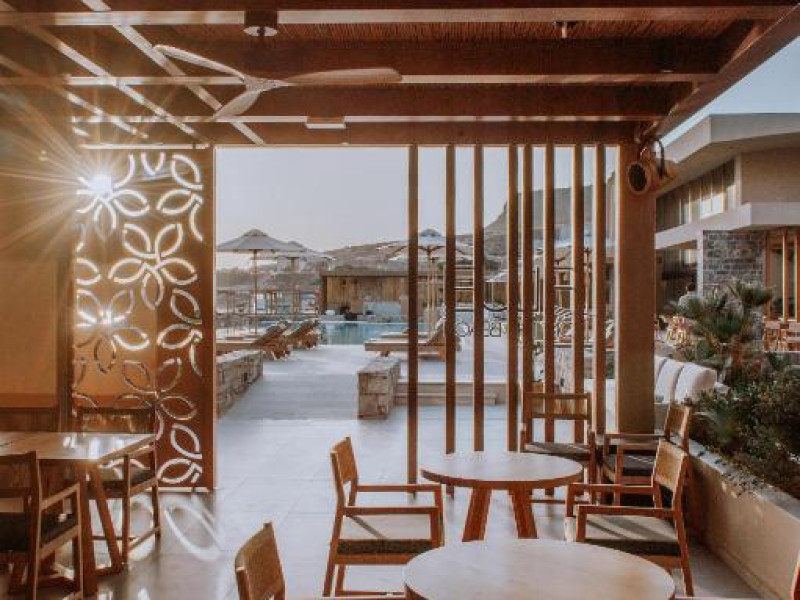 Bucurandu-se de vedere panoramică la Marea Cretei, restaurantul principal de la Unique Blue! Resort and Villas Adults Only servește preparate grecești și internaționale in stil bufet. Băuturi și gustări sunt pregătite la barul de pe plajă.