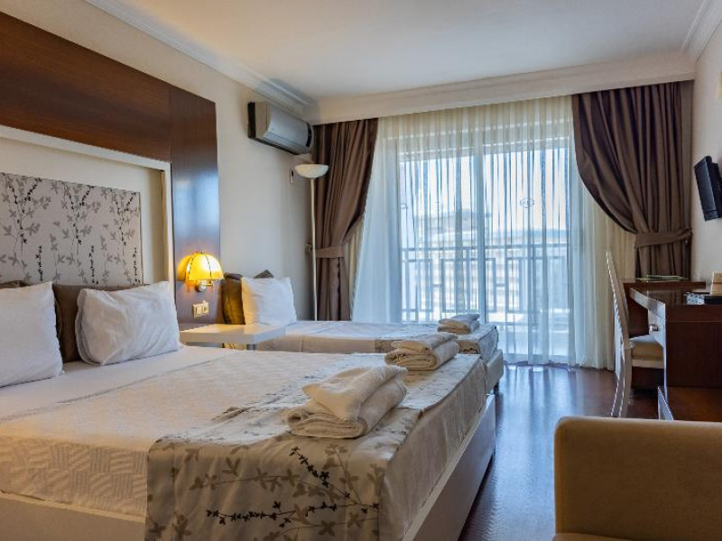 Guests have a choice of 102 non-smoking rooms located in a 7-storey main building and a 4-storey auxiliary building. The friendly staff at the reception desk in the lobby are happy to answer any questions. Services such as a cloakroom, a baggage storage service and a currency exchange service ensure a comfortable stay. Wireless internet access allows guests to stay connected while on holiday. The tour desk offers assistance with booking excursions. A lift and wheelchair-accessible facilities are available. The grounds of the hotel feature a playground and a lovely garden. Additional facilities include a playroom. Guests arriving by car can park their vehicles in the garage or in the car park (no extra charge). Further services and facilities include a car hire service, medical assistance, room service (for a fee), a laundry service, a hairdresser and a hotel shuttle bus.Datorita dinamicitatii domeniului disponibilitatea ofertelor se modifica de la un moment la altul. De aceea ofertele sunt valabile in limita locurilor disponibile. Agentia nu este responsabila pentru eventualele neconcordante care pot aparea intre informatiile privind tarifele si alte detalii din site si informatiile primite in agentie. In aceste cazuri vor avea prioritate, intotdeauna, informatiile primite in agentie.