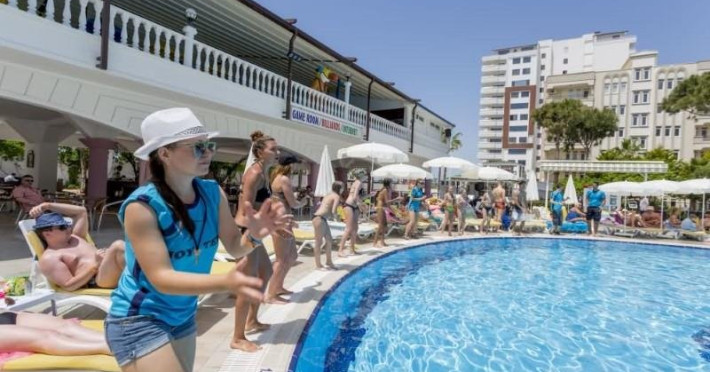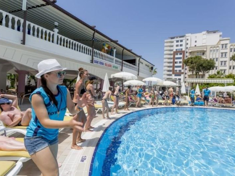 Localizare: Hotelul este situat in zona Alanya, orasul Mahmutlar la 7 km de centrul Alanyei si la 135 km de aeroportul din Antalya. Hotelul este construit pe o suprafata de 12.000 mp. Pentru a ajunge la plaja privata se traverseaza drumul principal.