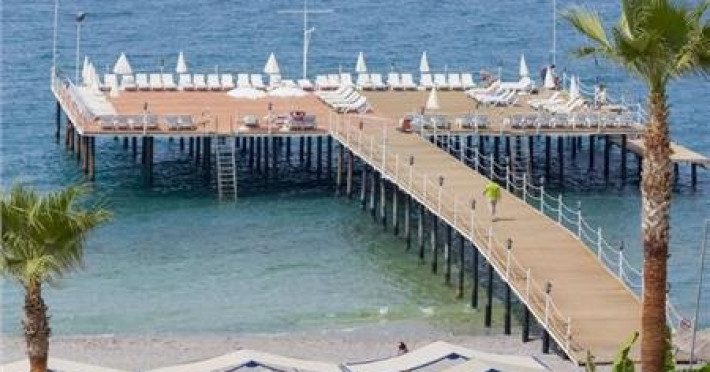 Facilitati hotel: Hotelul dispune de restaurant principal (bucatarie turceasca si europeana), restaurant a la carte (mediteranean turcesc, o data pe sejur gratuit); sase baruri (lobby bar, bar la piscina, bar pe plaja, disco bar, restaurant bar, pub irlandez), doua piscine in aer liber (2850 mp),trei tobogane de apa, piscina interioara, doctor, centru spa, coafor, spalatorie, curatatorie ,magazine.