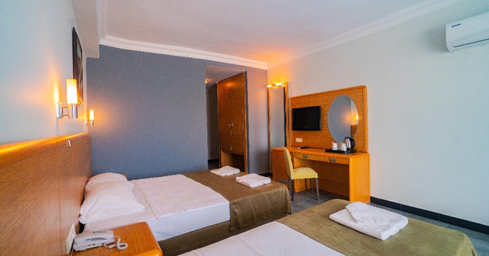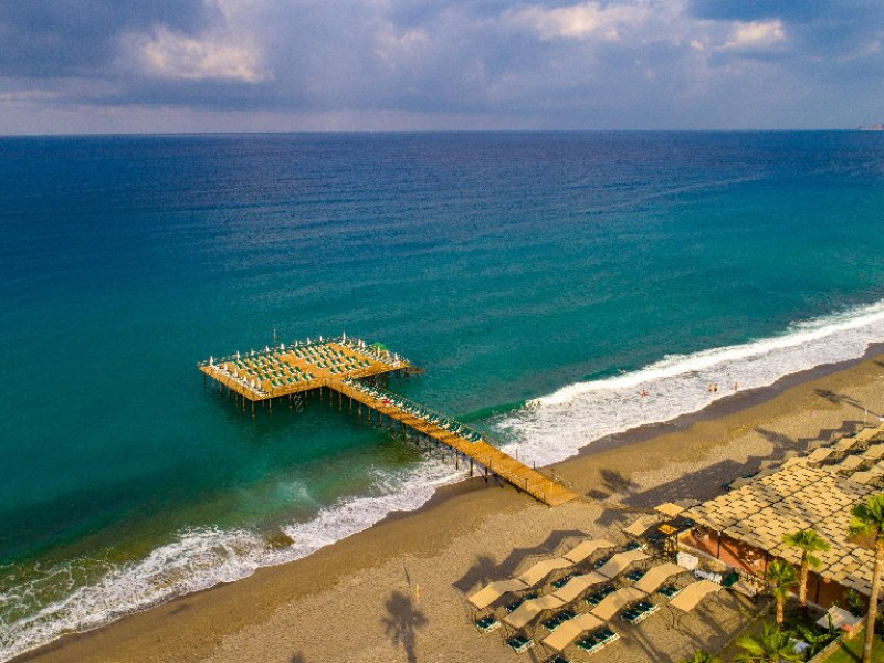 Plaja: Senza Grand Santana se afla chiar la malul marii, in districtul Mahmutlar, unul dintre cele mai frumoase districte de pe coasta Marii Mediterane, oferind acces imediat la plaja privata cu nisip si pietris. Sezlonguri si umbrele gratuite.