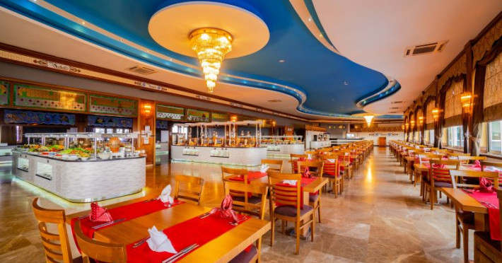 Hotelul oferă o varietate de facilități, inclusiv un restaurant principal și a la carte, 6 baruri, 2 piscine exterioare, trei tobogane cu apă, servicii medicale, spa, salon de coafură, lanțuri de magazine, servicii de spălătorie și curățătorie chimică, 2 săli de conferințe. De asemenea, sunt disponibile baie turcească, sală de fitness, teren de volei pe plajă, tenis de masă, darts, program de animație și discotecă, toate oferite gratuit. Wi-Fi este disponibil în lobby și la bar. Pentru cei mici, sunt oferite facilități precum bufet, piscină, două tobogane cu apă, loc de joacă și mini-club pentru copii cu vârste între 4 și 12 ani, iar serviciile de bonă sunt disponibile contra cost.