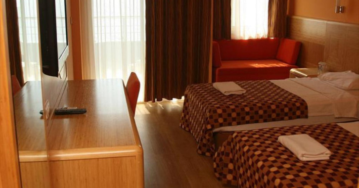 Localizare: Hotelul nostru se află în orașul Mahmutlar, la 145 km de Antalya și la 7 km de centrul orașului Alanya, pe malul mării. Plaja: Este posibil să ajungeți direct pe plajă din subpasajul hotelului nostru. Hotelul nostru a fost construit în 2001 și a fost ultima dată renovat în sezonul 2020. Facilitate hotel: • Restaurant principal • 5 baruri • 1 piscină în aer liber (850 m²) • 1 piscină cu 3 tobogane de apă • Piscină interioară (în sezonul de vară, neîncălzită) • Doctor (contra cost) • Centru SPA • Coafor (contra cost) • Magazine • Sală de întâlniri Facilitate camera: • baie / toaletă - dușul • uscător de păr • aer condiționat • Podea cu gresie • balcon • TV LCD • Telefon în cameră și în baie • Mini bar • Seif (contra cost) • Wifi (contra cost) • Servicii în cameră (contra cost) • Băutură răcoritoare în ziua sosirii (după aceea, doar apă) Activitati pentru copii: • Piscină pentru copii cu două tobogane de apă • Loc de joacă pentru copii • Mini Club (4-12 ani) Inclus: • Șezlonguri; Perne; Umbrelă • Baie turcească cu rezervare între orele 18:00-19:00 • Club de fitness în aer liber • Volei pe plajă • Tenis de masă • Programe de animație • Prosoape de plajă • Disco Extra cost: • Cutie de siguranță • Internet Wi-Fi • Telefon • Poștă • Masaj, Peeling • Coafor • Sporturi nautice • Înghețată • Medici • Sucuri proaspete de fructeFacilitati hotel