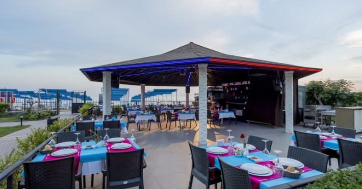 La Senza Hotels Inova Beach oaspeții au la dispoziție un restaurant care servește mâncare în stil bufet. Preparate din bucătăria internațională așteaptă să fie degustate în fiecare zi la micul dejun, prânz și cină. Masa poate fi servită atât în interior, cît si în aer liber, pe terasă, în funcție de vreme. 4 baruri, dintre care unul la piscină și unul pe plajă, sunt disponibile cu o ofertă variată de băuturi răcoritoare și alcoolice.