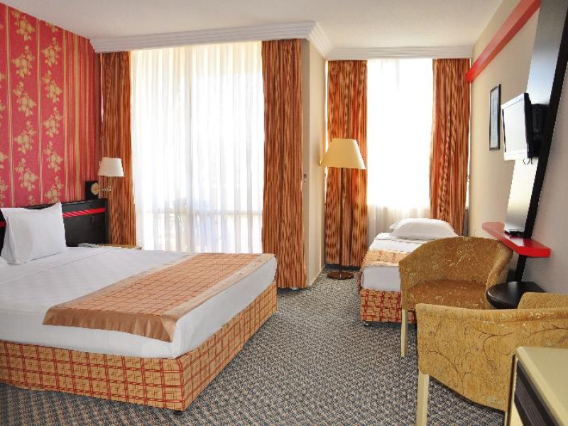 The hotel has 16 suites and 209 double rooms, which are located on 4 storeys and are reachable by lift. The friendly staff at the reception desk in the lobby are happy to answer any questions. Amenities include a safe and a currency exchange service. Wireless internet access in public areas allows guests to stay connected. Wheelchair-accessible facilities are available. There are also a number of shops that make for great strolling and browsing. The grounds of the hotel feature a playground and a lovely garden. Additional facilities include a newspaper stand. Guests arriving by car can park their vehicles in the car park. Further services and facilities include medical assistance, room service (for a fee), a laundry service and a hairdresser.Datorita dinamicitatii domeniului disponibilitatea ofertelor se modifica de la un moment la altul. De aceea ofertele sunt valabile in limita locurilor disponibile. Agentia nu este responsabila pentru eventualele neconcordante care pot aparea intre informatiile privind tarifele si alte detalii din site si informatiile primite in agentie. In aceste cazuri vor avea prioritate, intotdeauna, informatiile primite in agentie.
