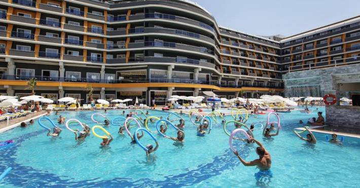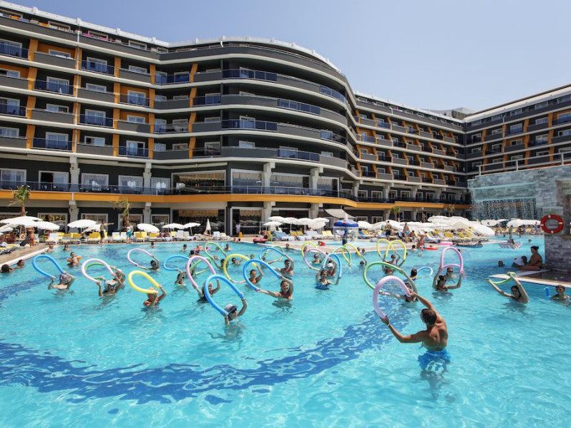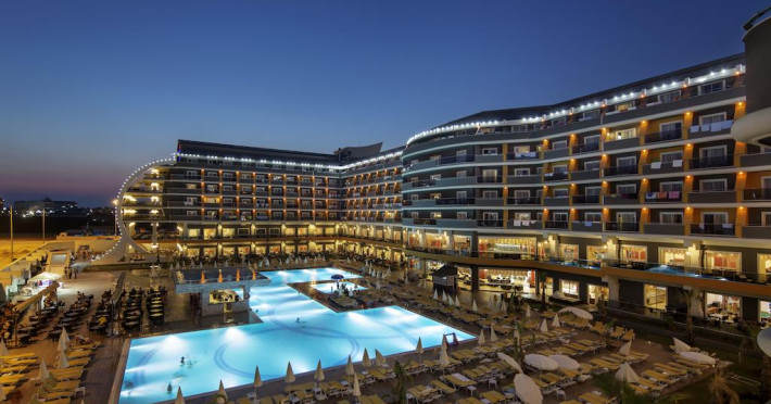 Situat la 100 km de aeroportul Antalya, la 15 km de orasul Alanya, in localitatea Turkler, la 300 m peste drum de plaja proprie, acces prin pasaj subteran.