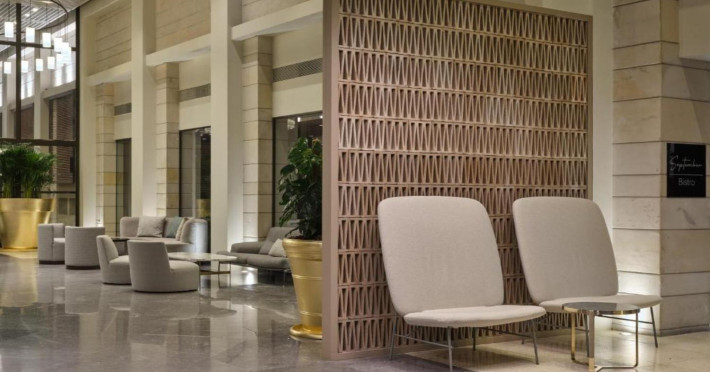 The modern design of 99 luxurious rooms and suites, decorated with unique pieces of furniture and lights that carry the signature of the most well known contemporary designers of the world.