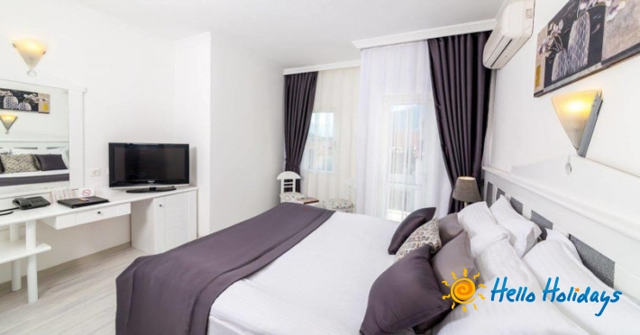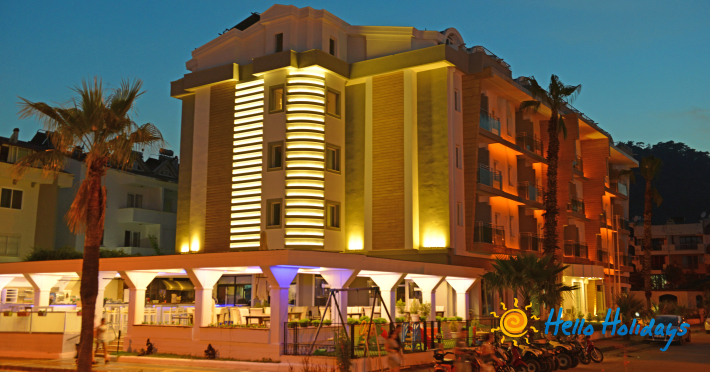 Hotelul este situat la aproximativ 250 m de plajă fiind un loc ideal pentru relaxare. Acesta se afla la 11 minute de mers pe jos de parcul acvatic Aqua Dream si la aproximativ 1 km distanță de centrul stațiunii. Aeroportul Dalaman se află la o distanta de 95 km.Datorita dinamicitatii domeniului disponibilitatea ofertelor se modifica de la un moment la altul. De aceea ofertele sunt valabile in limita locurilor disponibile. Agentia nu este responsabila pentru eventualele neconcordante care pot aparea intre informatiile privind tarifele si alte detalii din site si informatiile primite in agentie. In aceste cazuri vor avea prioritate, intotdeauna, informatiile primite in agentie.