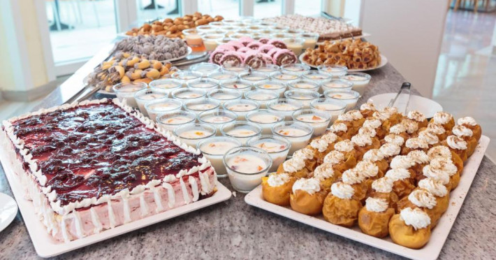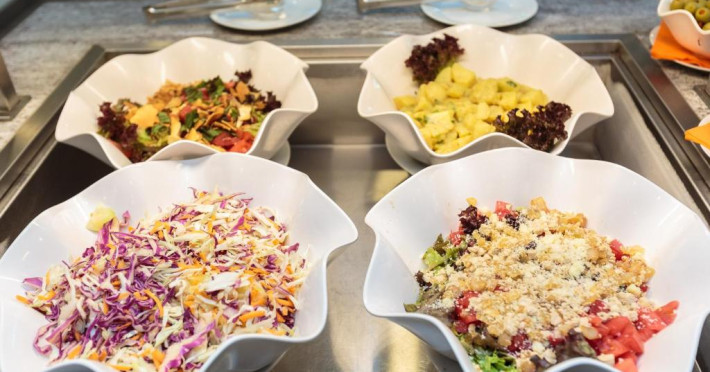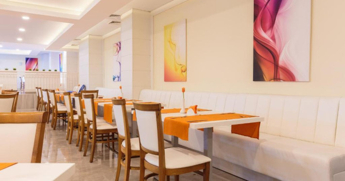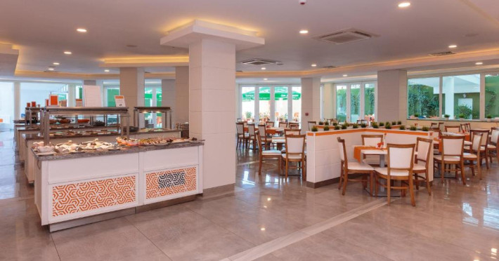 Restaurantul principal are o terasă, iar la piscină este un restaurant à la carte. Sunt disponibile scaune inalte pentru copii si bufet pentru copii.