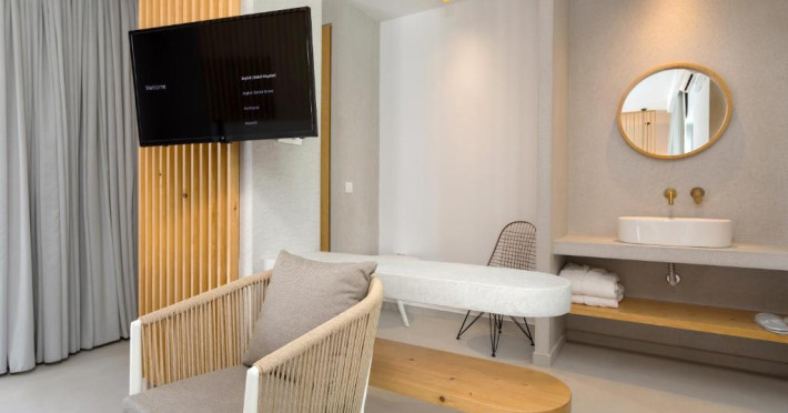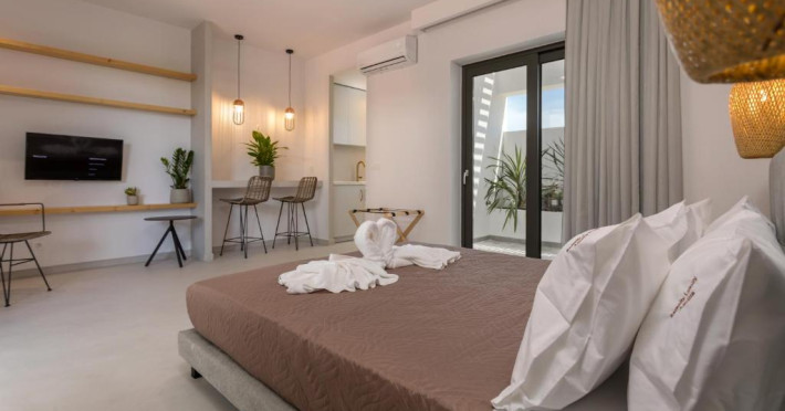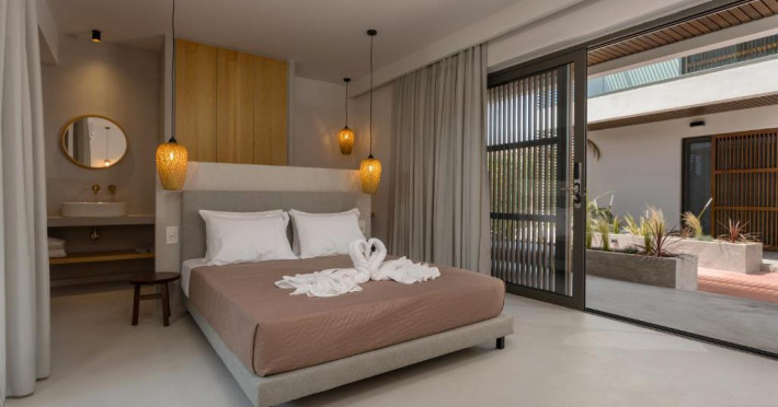 Camerele hotelului au aer condiționat, birou, TV cu ecran plat, baie privată, lenjerie de pat, prosoape și terasă cu vedere la munte. SERENITY LUXURY HOTEL AGRILIA oferă unele unități cu vedere la piscină, iar camerele sunt dotate cu balcon. Toate camerele vor oferi oaspeților un frigider.