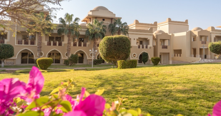 Resortul, cu o arhitectura marocana, este situat intr-o gradina frumos amenajata, pe plaja din Golful Makadi, la o distanta de 35 km de Hurghada, la 30 de minute transfer de la aeroport, pe plaja privata de 320 m lungime, cu nisip si corali. Este alegerea ideala pentru cupluri si familii, oferind servicii moderne intr-o ambianta placuta si eleganta.