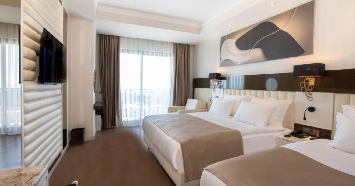 Descriere:Hotelul de 5 stele s-a deschis in 2024 si se afla in statiunea Alanya, pe plaja cu nisip si pietricele.