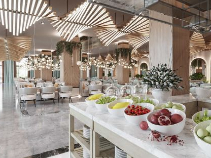 Acest hotel de 5* se va deschide anul acesta si ofera turistiilor sai facilitati precum: restaurant principal, 2 restaurant a la carte, patiserie, 7 baruri, 2 piscine exterioare, aquapark, 1 piscina interioara, baie turcească și saună.